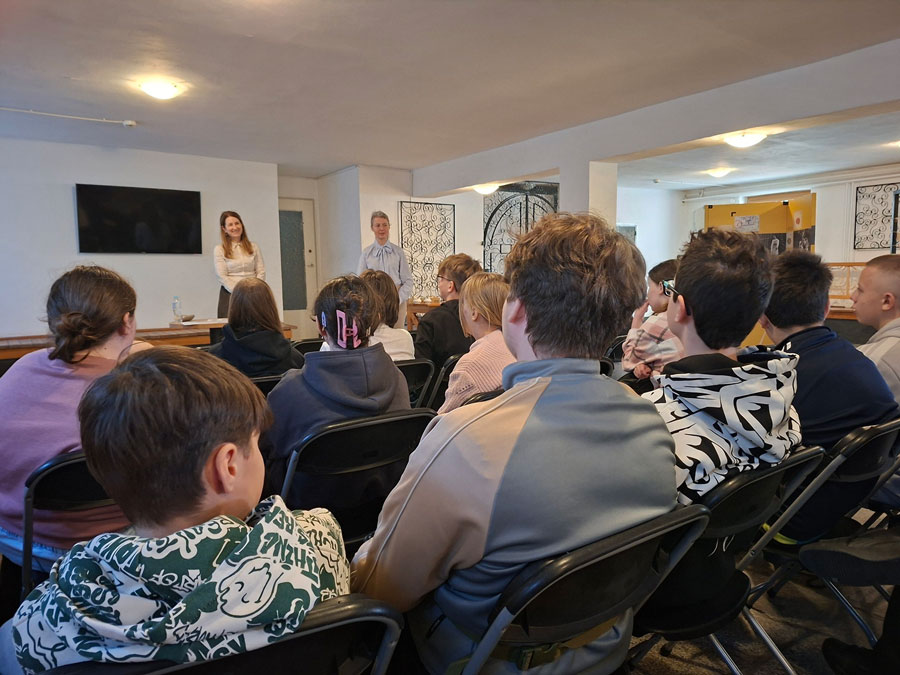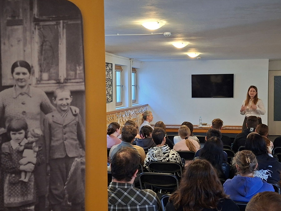 Tematyczną prelekcję dla uczniów miejscowej Szkoły Podstawowej wygłosiła dr Anna Wickiewicz z CMJW. Opowiadając historie dzieci i dorosłych sprzed 80 lat, podkreślała emocjonalny wymiar rozłąki i codziennych trudów, które dziś trudno sobie wyobrazić.